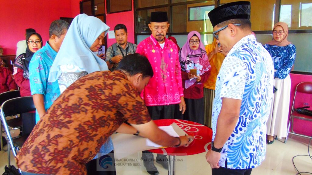 Bupati Buol menyaksikan penandatanganan berita acara sertijab Plt. Kadis Kumperindag (Foto: Jefri)
