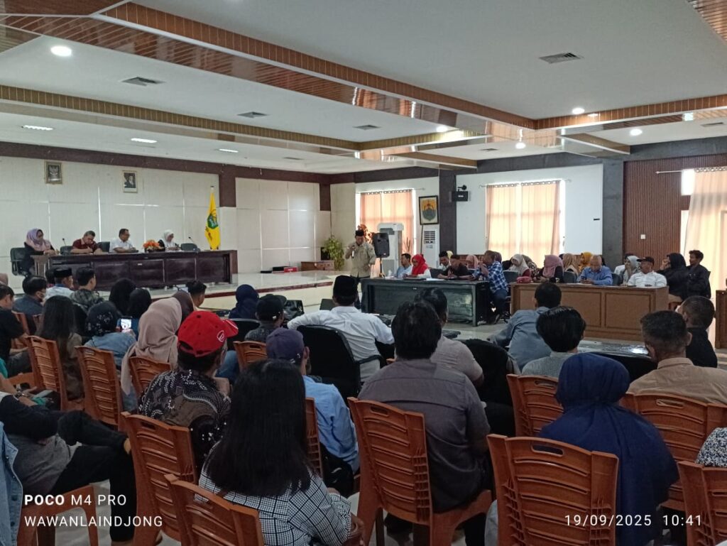 Bupati Buol, H. Risharyudi Triwibowo memimpin audiensi bersama pengurus Koperasi Merah Putih (KMP) se-Kabupaten Buol di Aula Pobokidan, Kantor Bupati Buol, Lantai II, Jumat (19/9). Pertemuan ini dimaksudkan untuk memperkuat peran koperasi sebagai motor penggerak ekonomi kerakyatan di tingkat desa dan kelurahan.