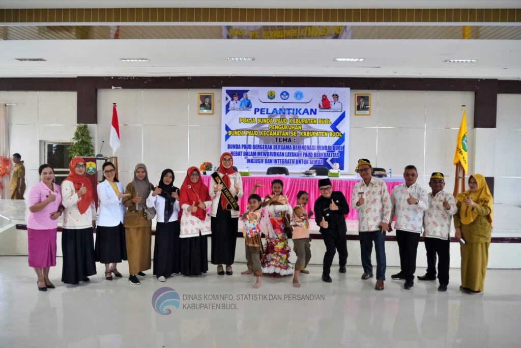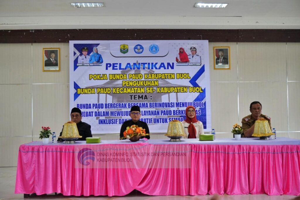 Pemerintah Kabupaten Buol menggelar pelantikan Kelompok Kerja (Pokja) Bunda Pendidikan Anak Usia Dini (PAUD) Kabupaten Buol serta pengukuhan Bunda PAUD Kecamatan se-Kabupaten Buol di Aula Pobokidan, Lantai II Kantor Bupati Buol, Selasa (7/10/2025).