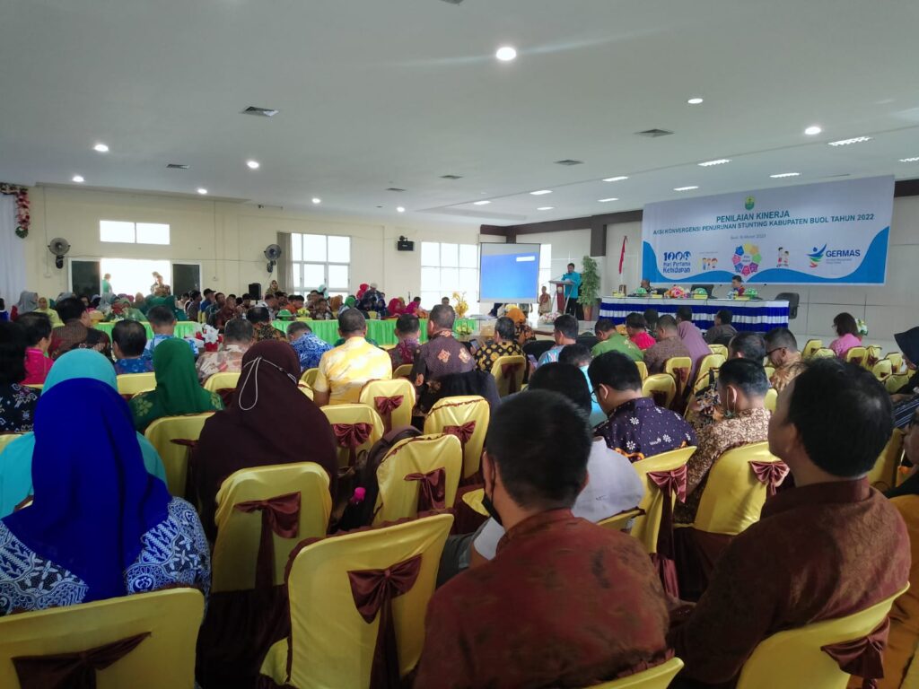 Penilaian kinerja delapan aksi konvergensi penurunan stunting di Kabupaten Buol tahun 2022 baru saja dilaksanakan. Kegiatan ini dibuka oleh Sekda Kabupaten Buol, Drs, Mohammad Suprizal Jusuf, MM dan dihadiri oleh berbagai pihak, termasuk DPRD, forum Forkopimda, pimpinan OPD, camat, , ketua DWP Kab. Buol, Ketua Tim Penggerak PKK Kab Buol, Ketua Bhayangkari, Ketua Persit, BKKBN, tim percepatan penurunan stunting kabupaten Buol serta rombongan tim penilai penurunan stunting Provinsi Sulawesi Tengah.