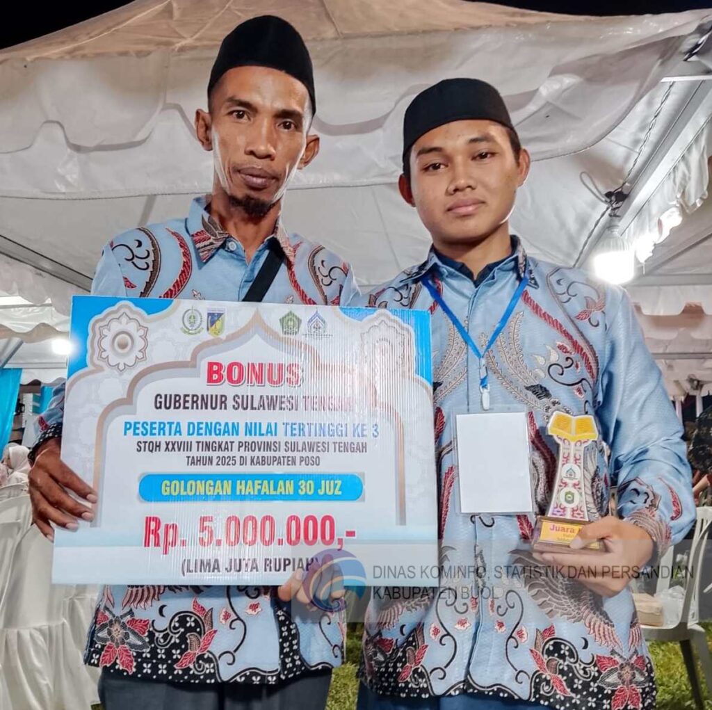 Kafilah Kabupaten Buol menorehkan prestasi membanggakan dalam ajang Seleksi Tilawatil Qur’an dan Hadist (STQH) ke-28 tingkat Provinsi Sulawesi Tengah yang digelar di Lapangan Sintuwu Maroso, Kabupaten Poso. Pada penutupan kegiatan yang berlangsung Jumat (27/6), peserta dari Buol berhasil meraih Juara Terbaik I pada cabang Hifzil Qur’an, serta beberapa juara lainnya di kategori berbeda.