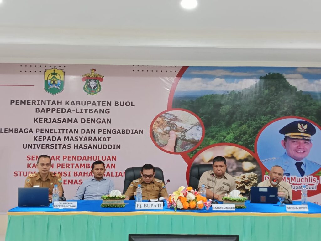 Pemerintah Kabupaten Buol melalui Badan Perencanaan Pembangunan Daerah, Penelitian dan Pengembangan (Bappeda-Litbang) bekerja sama dengan Lembaga Penelitian dan Pengabdian kepada Masyarakat (LPPM) Universitas Hasanuddin, menyelenggarakan kegiatan kajian pertambangan studi potensi bahan galian bijih emas di Kabupaten Buol. Acara ini berlangsung di Aula Lantai 3 Kantor Bupati Buol Senin, 31 Juli 2023.
