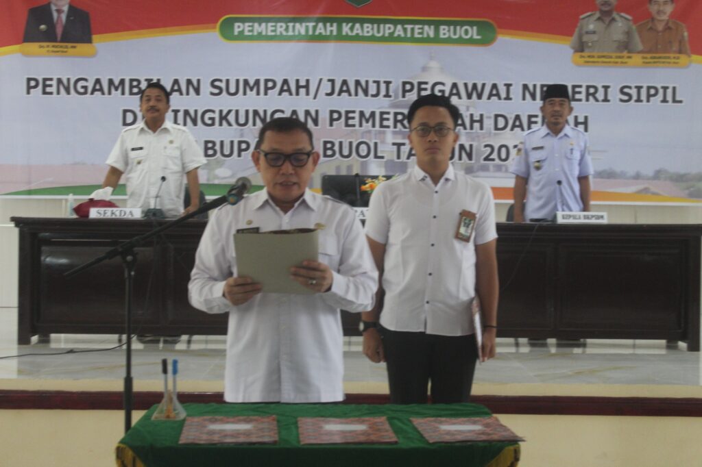Pj Bupati meminta kepada ASN yang baru saja disumpah agar benar-benar menghayati isi sumpah tersebut dalam setiap tugas sebagai ASN. “Sumpah yang telah diucapkan pada hakekatnya merupakan kesanggupan Saudara terhadap negara dan juga Tuhan Yang Maha Esa, untuk menjalankan tugas dan fungsi sebagai aparatur pemerintah” tegasnya. Ia juga berpesan dalam menjalankan tugas dan fungsinya agar bisa menjadi teladan bagi lingkungan kerja dan lingkungan sekitar. “Yang dibutuhkan bukan hanya PNS yang cerdas, tapi juga berakhlak. Untuk itu, kedepankan etika, moral, kejujuran, keikhlasan dan rasa tanggung jawab. Jadilah sosok positif, bisa menjadi teladan.” pesan Pj. Bupati Buol.
