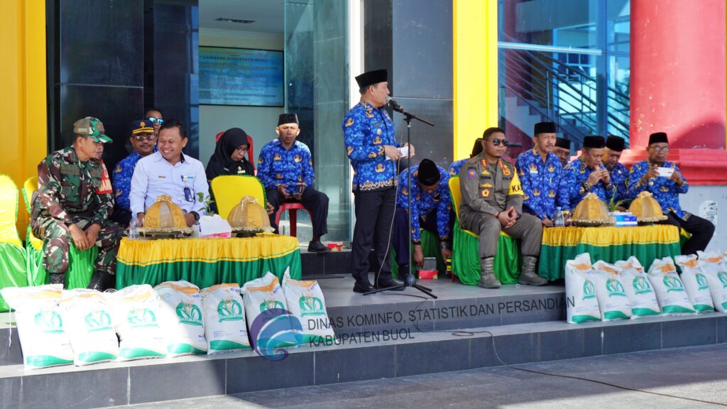 Pj. Bupati Buol, Drs. M. Muchlis melaksanakan pelepasan simbolik bantuan pangan oleh Pemerintah Daerah oleh Pemerintah Daerah Kabupaten Buol. Kegiatan ini dilaksanakan di Kantor Bupati Buol, Senin 19 Februari 2024. Bantuan pangan berupa beras ini disalurkan untuk membantu meringankan beban keluarga miskin ekstrim di wilayah Kabupaten Buol.