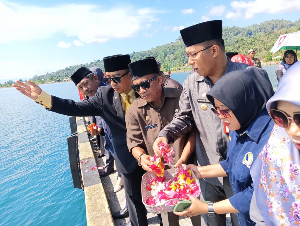 Seusai upacara bendera di Lapangan Kantor Bupati Buol, momentum penghormatan kepada para pahlawan berlanjut dengan Upacara Tabur Bunga di Pelabuhan Leok. Wakapolres Buol, Kompol Jonny Bolang, S.Sos., M.H., memimpin upacara ini, dihadiri oleh unsur Forkopimda yang dengan khidmat melakukan prosesi tabur bunga sebagai tanda penghargaan kepada para pahlawan.