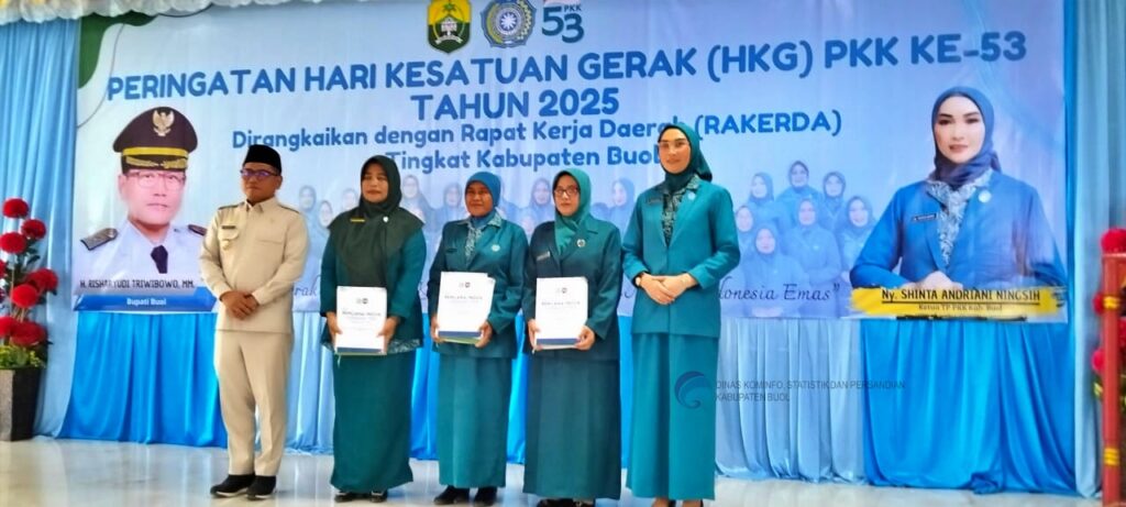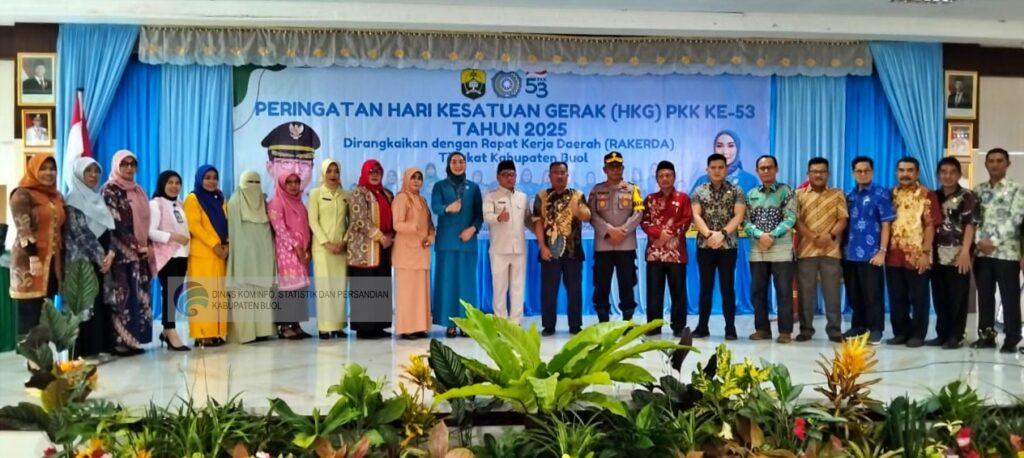 Pemerintah Kabupaten Buol bersama Tim Penggerak PKK menggelar puncak acara peringatan Hari Kesatuan Gerak (HKG) PKK ke-53 Tahun 2025 yang dirangkaikan dengan Rapat Kerja Daerah (Rakerda) PKK Kabupaten Buol. Kegiatan berlangsung di Aula Lantai II Kantor Bupati Buol, Jumat (28/11).