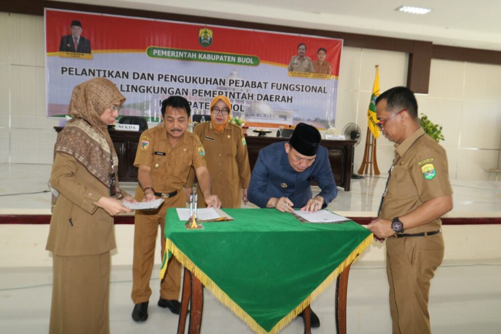Pj Bupati Buol melaksanakan Penandatanganan Komitmen Antara Pj. Bupati dan Sekretaris Daerah, Inspektur Daerah, Kepala BPKAD dan Seluruh Pimpinan Perangkat Daerah, Kabag serta Camat se Kabupaten Buol terhadap penyelesaian Tindak Lanjut Rekomendasi Hasil Pemeriksaan (TLRHP) BPK. Kegiatan ini dilaksanakan di Aula Lt. II Kantor Bupati Buol, Senin (26/6).