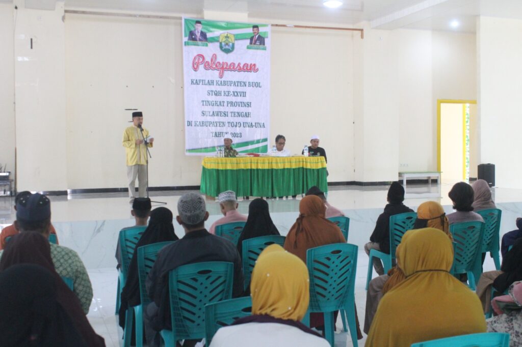 Sekretaris Kabupaten Buol, Moh. Suprizal Jusuf, MM, melepas kontingen Kabupaten Buol yang akan mengikuti STQH ke-XXVII di Kabupaten Tojo Una-Una pada Jumat, 5 Mei 2023, di ruang serba guna Masjid Agung. Kafilah Kabupaten Buol yang dipimpin oleh Ketua Kontingen Kafilah Kabupaten Buol, Amir Togila, akan mengikuti 4 cabang lomba dengan jumlah peserta sebanyak 18 orang, 4 pelatih, 4 official, dan beberapa pengurus dan pendamping.