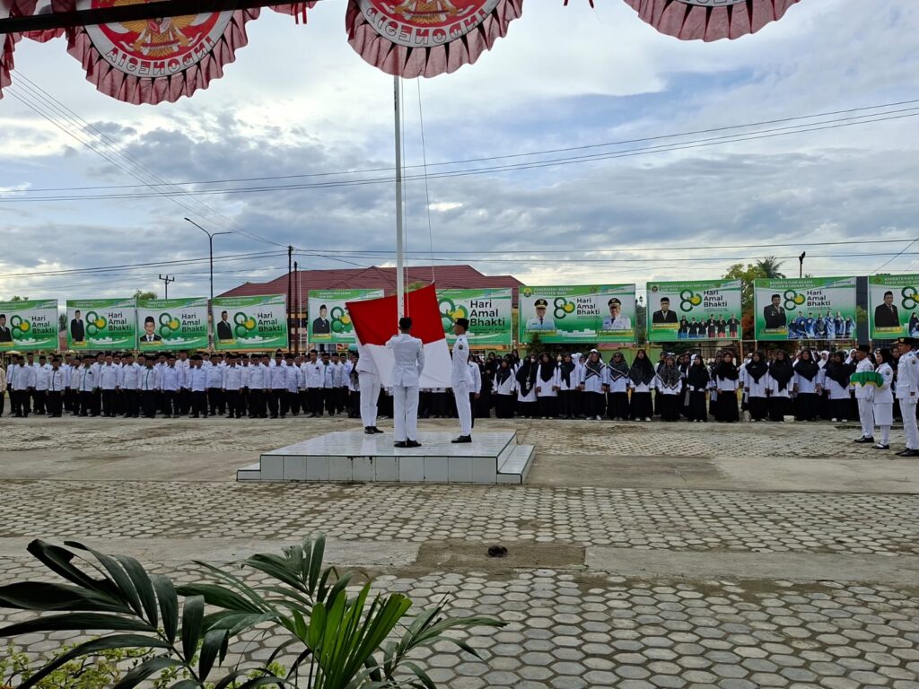 Wakil Bupati Buol, Dr. Moh. Nasir Dj. Daimaroto, SH., MH., menghadiri sekaligus bertindak sebagai Inspektur Upacara pada Peringatan Hari Amal Bhakti (HAB) ke-80 Kementerian Agama Republik Indonesia Tahun 2026, yang digelar di Halaman Kantor Kementerian Agama Kabupaten Buol, Sabtu (3/1/2026).