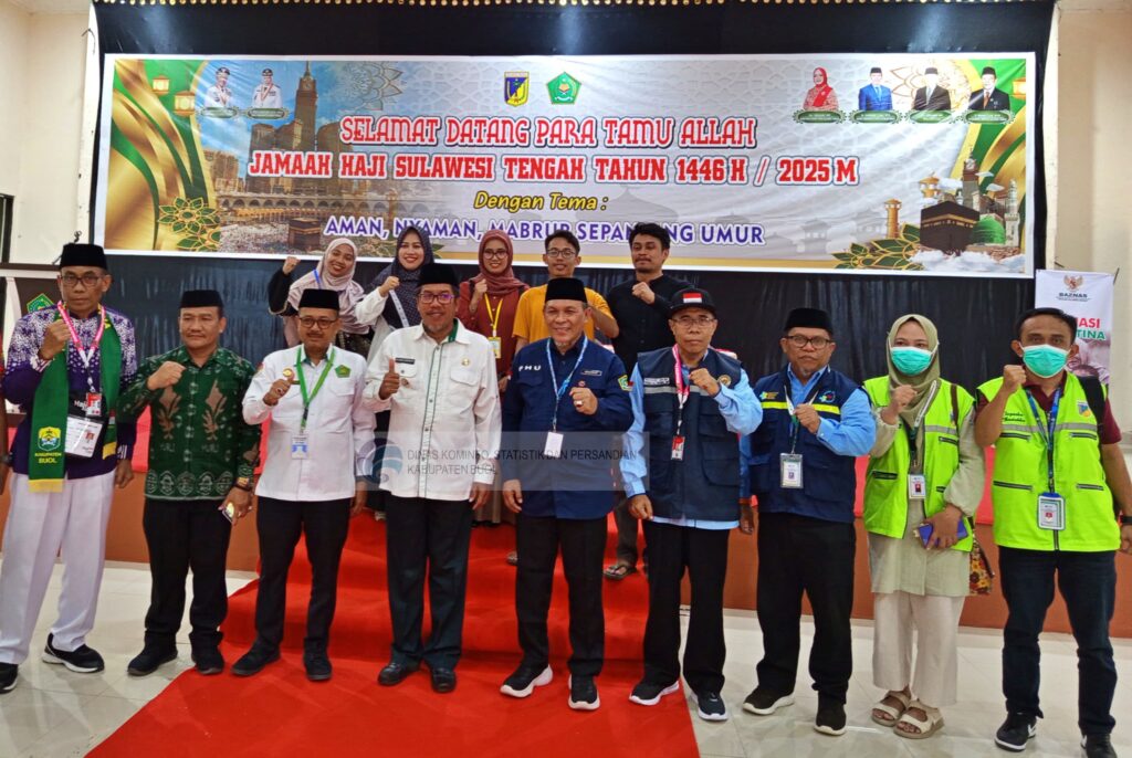 Rombongan Jemaah Haji Buol diterima langsung oleh Ketua PPIH Provinsi Sulteng, H. Muchlis, S.Ag., M.Pd., yang menyampaikan apresiasi atas sinergi dan kesiapan Pemerintah Kabupaten Buol dalam memfasilitasi keberangkatan para jemaah.