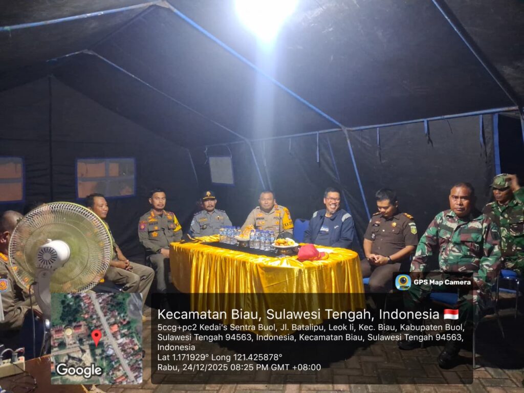 Dalam rangka memastikan perayaan Malam Natal 2025 berjalan aman, tertib, dan kondusif, Wakil Bupati Buol, Dr. Moh. Nasir Dj. Daimaroto, SH., MH, melakukan kunjungan dan pemantauan langsung ke sejumlah gereja di wilayah Kabupaten Buol, Rabu malam (24/12).